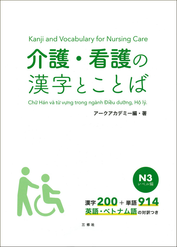 介護・看護に特化した漢字のワークブック。N3レベル編。